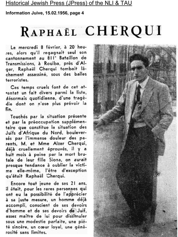 CHERKI 8 février 1956 / 26 Shevat 5716 carré 01bis. |