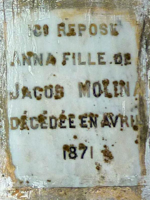 fille de Jacob Molina et de Maria Mesriche, épouse de Marie Paul Vincent Justin Gaubert, décédée le 8 avril 1878 (non en 1871).