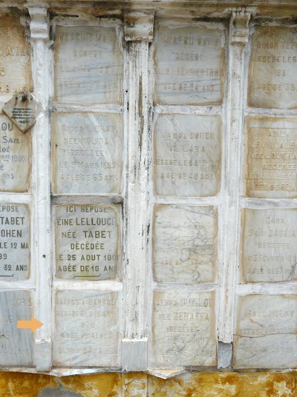 Haffsia ou Hassia Attal, Née à Tunis, fille d'Isaac Attal et de Sultana El Bazoni, épouse d'Ichoua Baranes, décédée le 17 octobre 1878 à Alger à 50 ans (information indiquée sur son acte de décès)